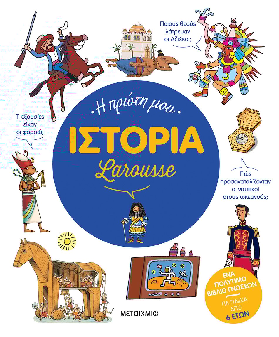 Ένα πρώτο βιβλίο Ιστορίας για να διασκεδάσετε πηγαίνοντας προς τα πίσω στον χρόνο: Μοιραστείτε τη ζωή των κυνηγών µαµούθ της Προϊστορίας, ανακαλύψτε τις µούµιες των φαραώ και τα µυστικά τους, επιτεθείτε σ’ ένα κάστρο µε ιππότες, περάστε µια µέρα στις Βερσαλλίες, στην αυλή του Βασιλιά Ήλιου…