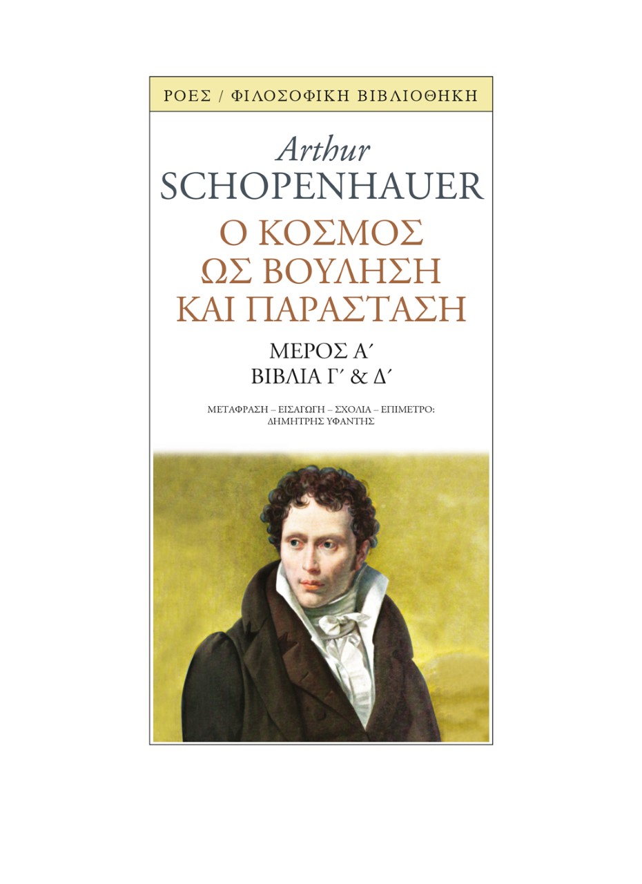 Στο κύριο έργο του, το Ο κόσμος ως βούληση και παράσταση, δημοσιευμένο σε πρώτη έκδοση το 1819, ο Σοπεγχάουερ εκθέτει την φιλοσοφία του συνολικά και συστηματικά. Στα δύο τελευταία από τα τέσσερα «βιβλία» του έργου, σ’ αυτά που περιλαμβάνει ο ανά χείρας δεύτερος τόμος της ελληνικής έκδοσης, κατ’ αρχάς πραγματεύεται την τέχνη και το αντικείμενό της, τις αιώνιες ιδέες (βιβλίο Γ΄), στην δε συνέχεια παρουσιάζει, δεδομένου του πραγματικού ποιού του κόσμου στον οποίον ζούμε, το σε τι συνίσταται η ηθική καθώς και η λύτρωση από τον κόσμο (βιβλίο Δ΄). Η τέχνη, καθότι γιγνώσκει άμεσα τις ιδέες, συνιστά ανώτερη μορφή γνώσης, συγχρόνως δε και την πρώτη βαθμίδα αποδέσμευσης από την απατηλότητα των φαινομένων. Η ηθική, με κεντρικό στοιχείο την συμπόνια, και η ολική παραίτηση από την βούληση για ζωή συνιστούν αντίστοιχα την δεύτερη και την τρίτη βαθμίδα της λύτρωσης από τον κόσμο.