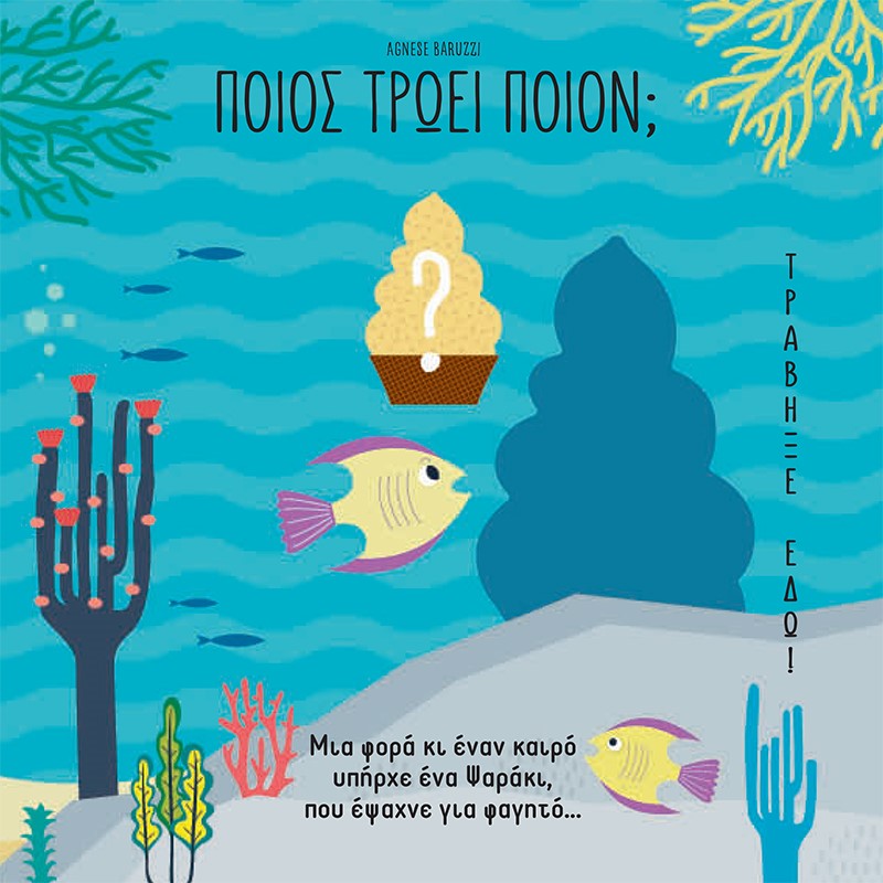 Τι τρώει ένας καρχαρίας; Ποιό είναι το αγαπημένο φαγητό του ψαριού-κλόουν; Απλώς Το μόνο που έχετε να κάνετε είναι να «βουτήξτε» στις σελίδες αυτού του καταπληκτικού βιβλίου push and pull και να το ανακαλύψτε. Ακολουθήστε το μονοπάτι των πιο αστείων ψαριών που ζουν στον ωκεανό και χρησιμοποιήστε τα πτερύγια push-and-pull για να τα βοηθήσετε να πάρουν το φαγητό τους. Προσοχή όμως: ό,τι λάμπει δεν είναι χρυσός! Με αυτό τον συναρπαστικό τρόπο θα μάθετε την τροφική αλυσίδα, έτσι δεν είναι;