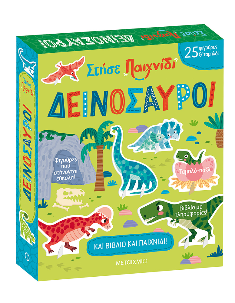 Στήσε εύκολα τις φιγούρες και συναρμολόγησε το ταμπλό-παζλ. Βρες στο βιβλίο ένα σωρό πληροφορίες για τους δεινόσαυρους, που θα εξάψουν τη φαντασία σου. Πάνω από 50 πληροφορίες για τους δεινόσαυρους! Το παιχνίδι ξεκινάει!